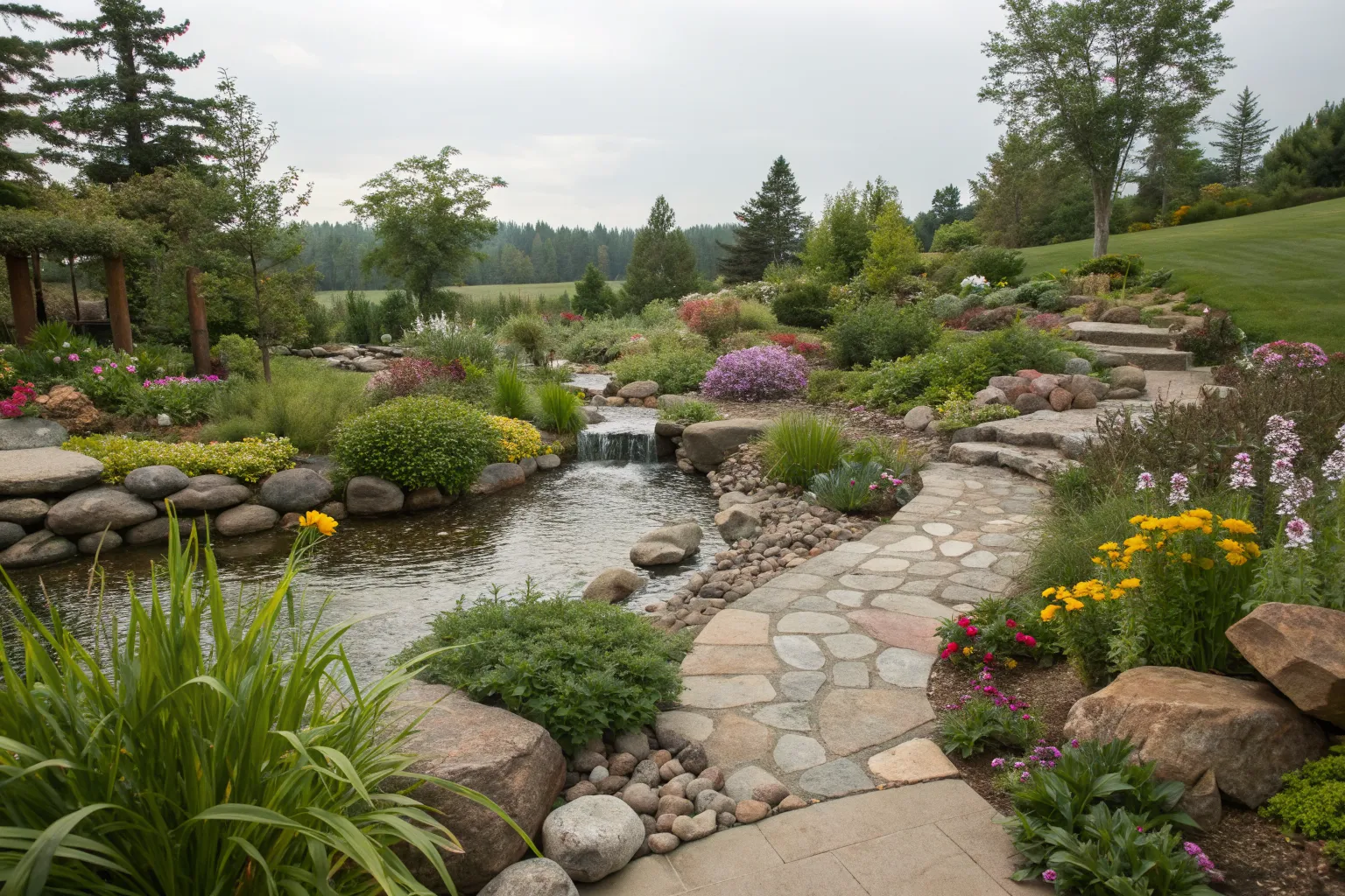 Combine river rocks with succulents and perennials for a stunning rock garden. These gardens require minimal upkeep and are a favorite among my clients for their rugged charm.