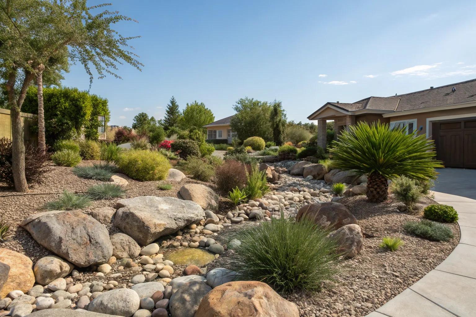 Incorporate a rock garden to blend rustic charm with low-maintenance beauty. Combining these elements with succulents or drought-tolerant plants can create a stunning focal point.