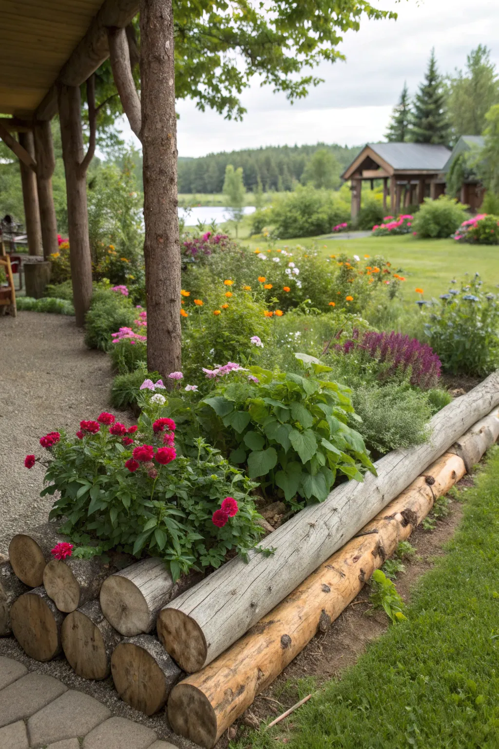 Curvy log borders can soften the edges of your garden, creating a natural flow. I love designing with curves; they bring a sense of whimsy and ease.