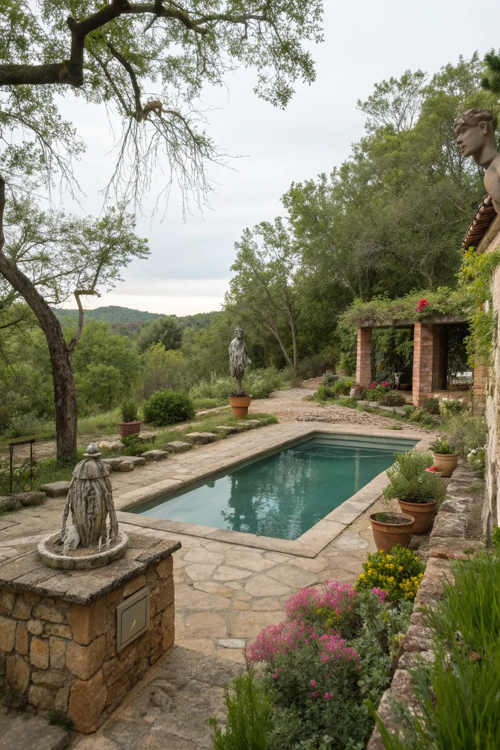 - Vintage-style Metal Garden Sculptures: Enhance your poolside with vintage-style metal sculptures for a classic rustic charm.