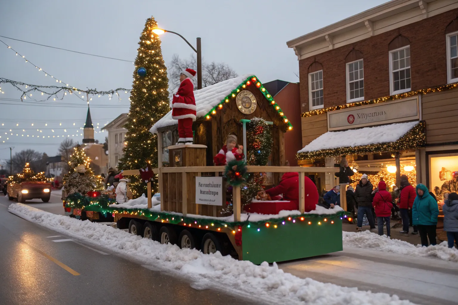 Place a cheerful Santa Claus figure in the center, waving to the crowd. His presence embodies the spirit of Christmas and makes your float instantly recognizable.