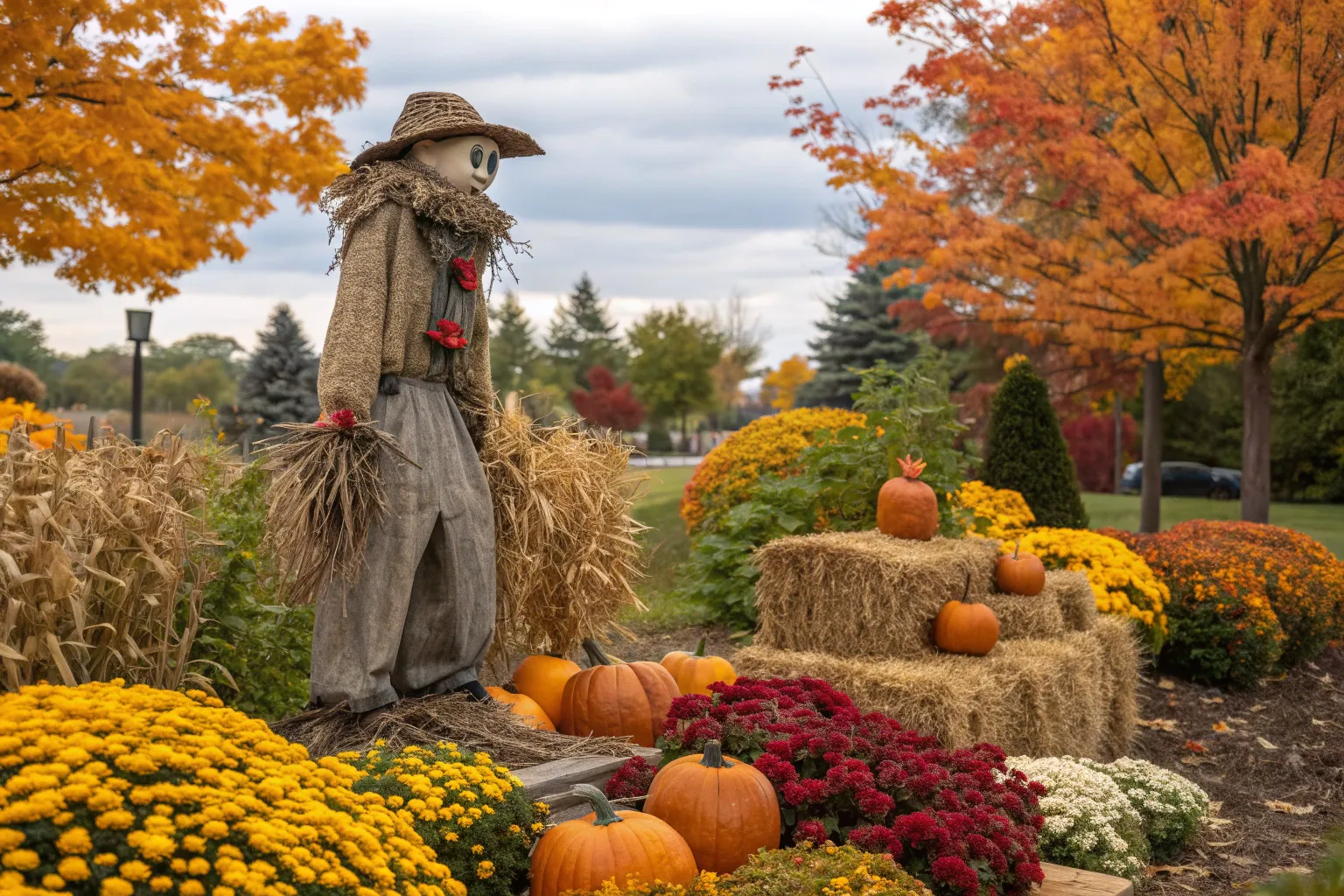 Incorporate mums or other fall flowers around your scarecrow for a burst of color. It’s a simple way to brighten up the display and add a touch of elegance.