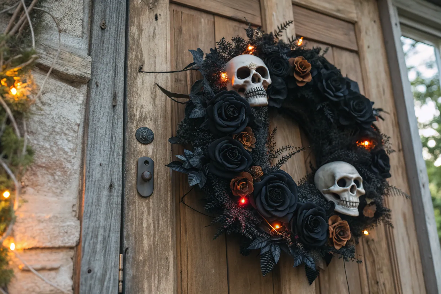 Combine the elegance of black roses with the haunting presence of skulls for a wreath that’s both beautiful and terrifying. I once helped a client create this, and it turned out to be a real conversation starter!