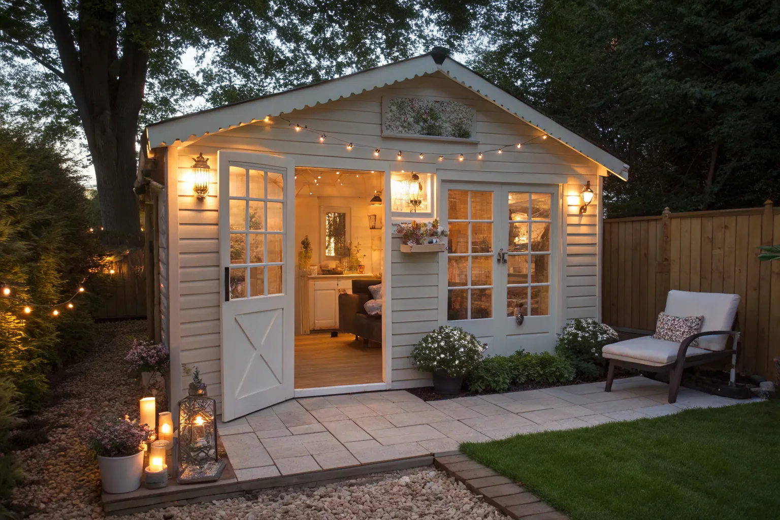 - Wall-Mounted String Lights: Create a warm and inviting atmosphere with minimalist string lights for your she shed sanctuary.