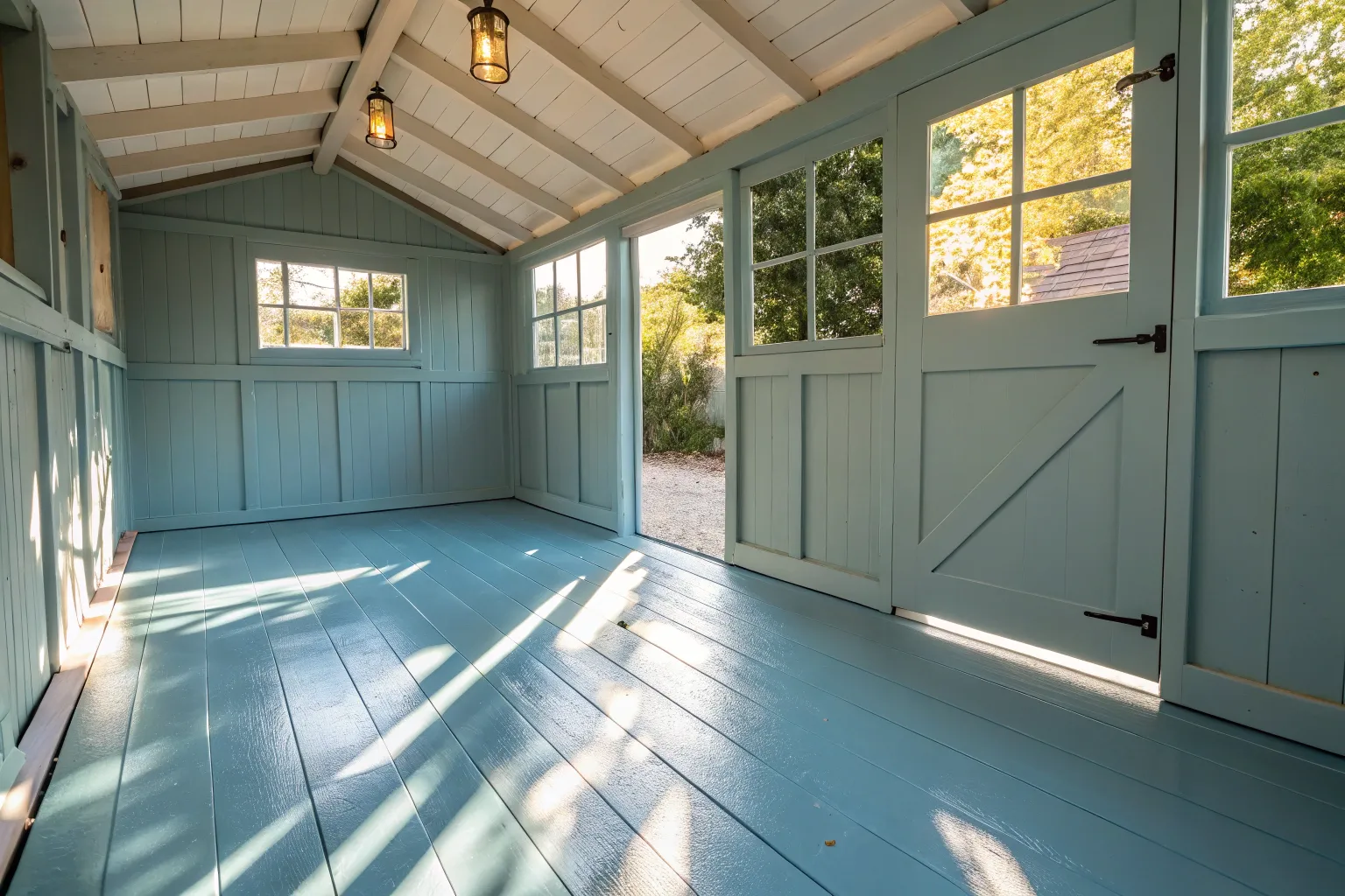 - Seafoam Green Floor Paint: Transform your shed with refreshing seafoam green paint, bringing a coastal vibe instantly.