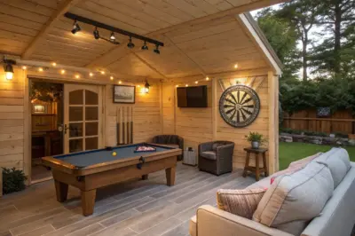 A pool table can be the centerpiece of your shed games room, offering endless entertainment for you and your friends. From my experience, it instantly elevates the space, making it feel like a genuine game lounge.