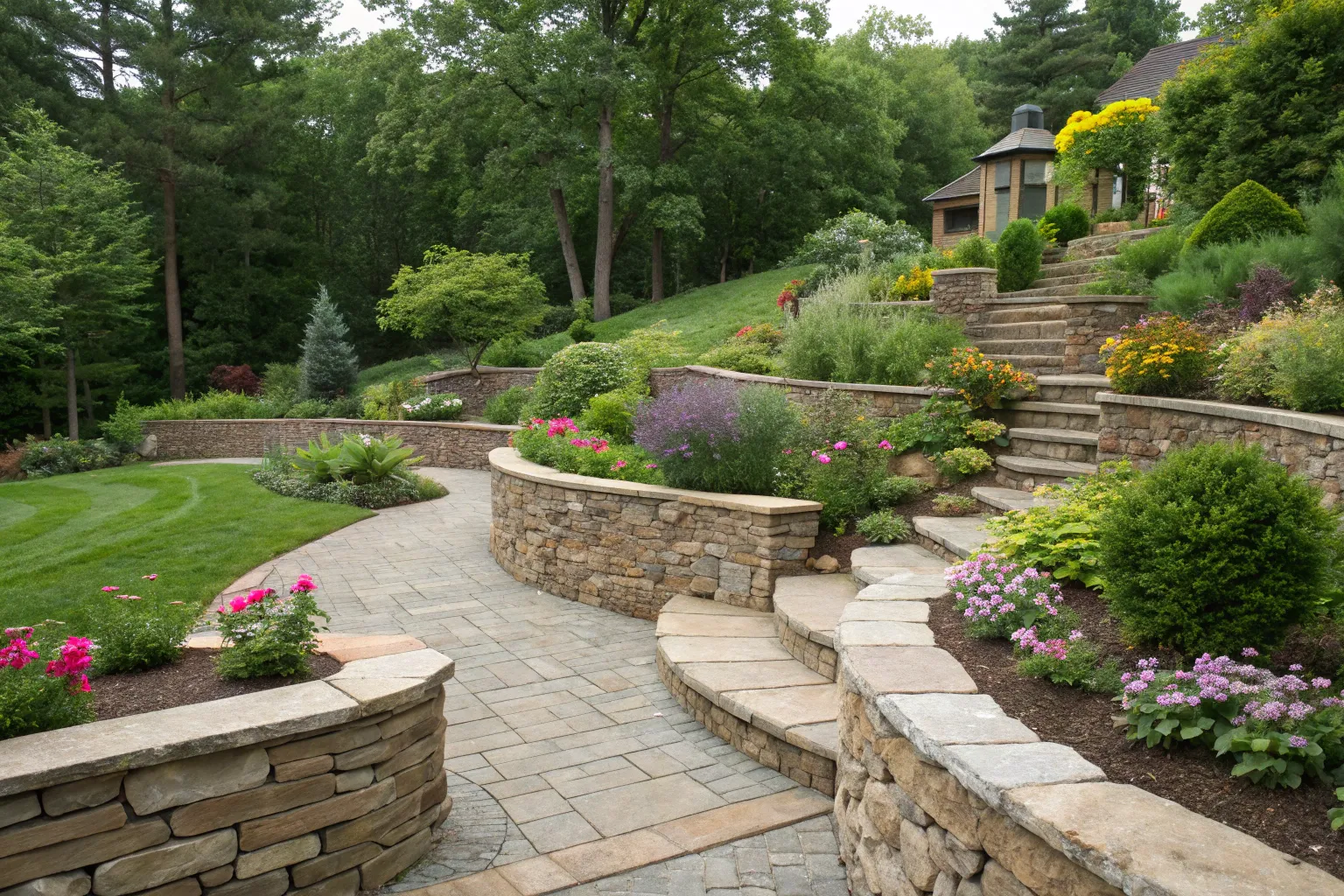 Incorporate planting spaces into your retaining wall design. I’ve helped clients create stunning walls that double as flower beds, bringing blooms right to eye level.