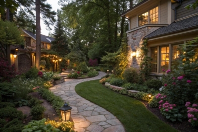 Pathways don’t have to be straight and narrow. I love using curved paths with stepping stones or gravel, which create a more inviting and spacious feel.