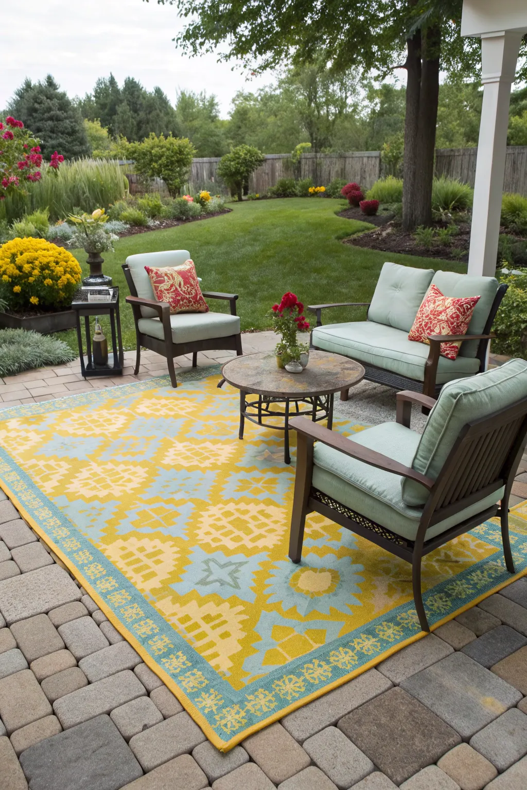 - Geometric Patterned Outdoor Rug: Elevate your patio with a geometric outdoor rug, adding style and coziness instantly.