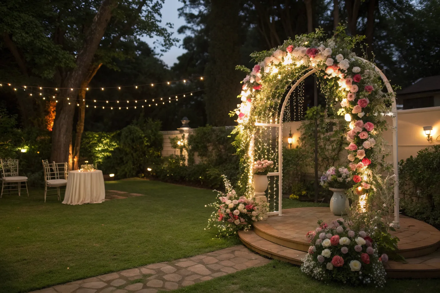 - Outdoor String Lights: Create a magical ambiance with outdoor string lights, enhancing your backyard wedding charm effortlessly.