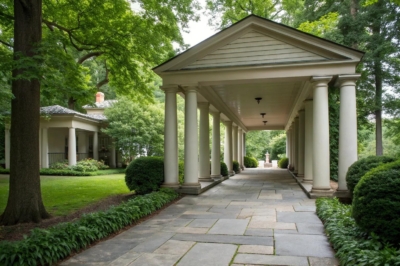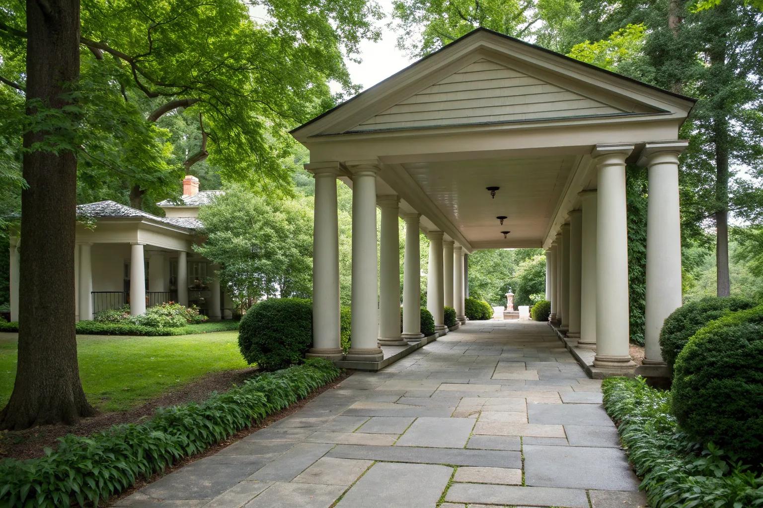 Complement your portico with neat landscaping, like tidy grass and stone pathways. This creates a cohesive look that enhances your home’s overall appeal.