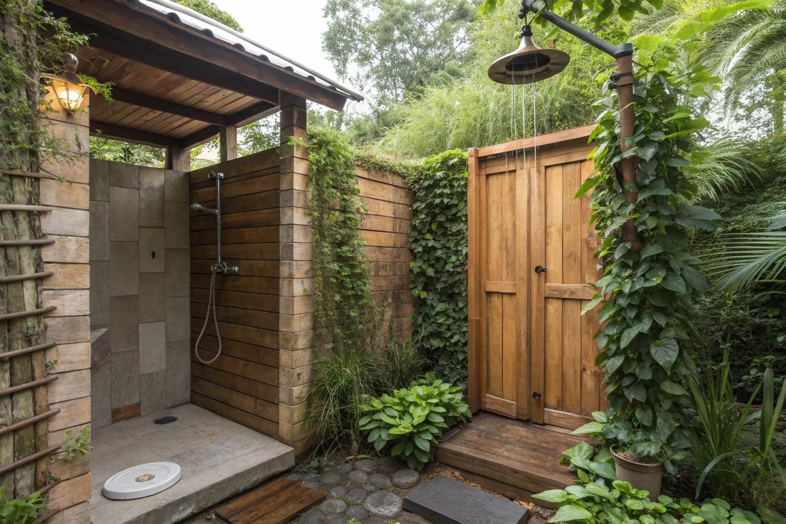 - Reclaimed Wood Panels: Add rustic charm to your outdoor shower with eco-friendly, reclaimed wood panels.