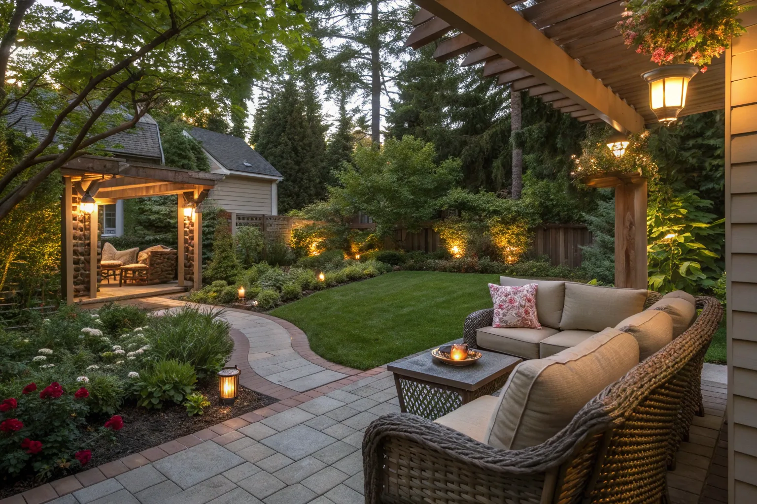 For intimacy, try tall hedges or screens for privacy. They can transform your backyard into a secluded retreat.