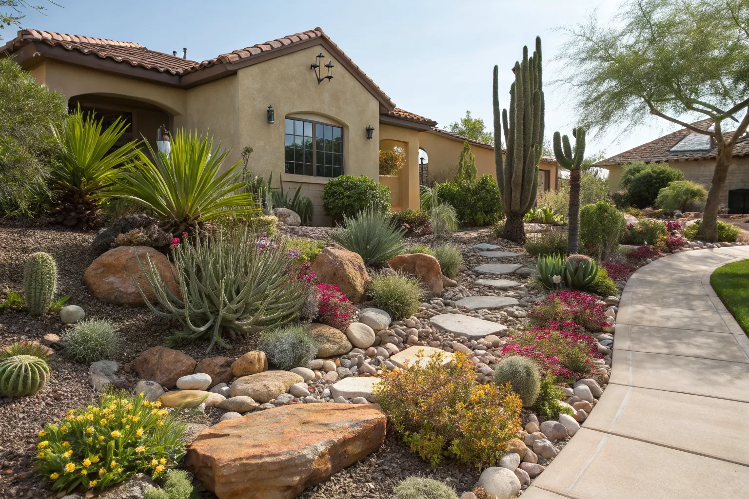 Succulents are rock stars in xeriscaping—they’re hardy and need little water. I’ve seen them transform dull corners into vibrant focal points.
