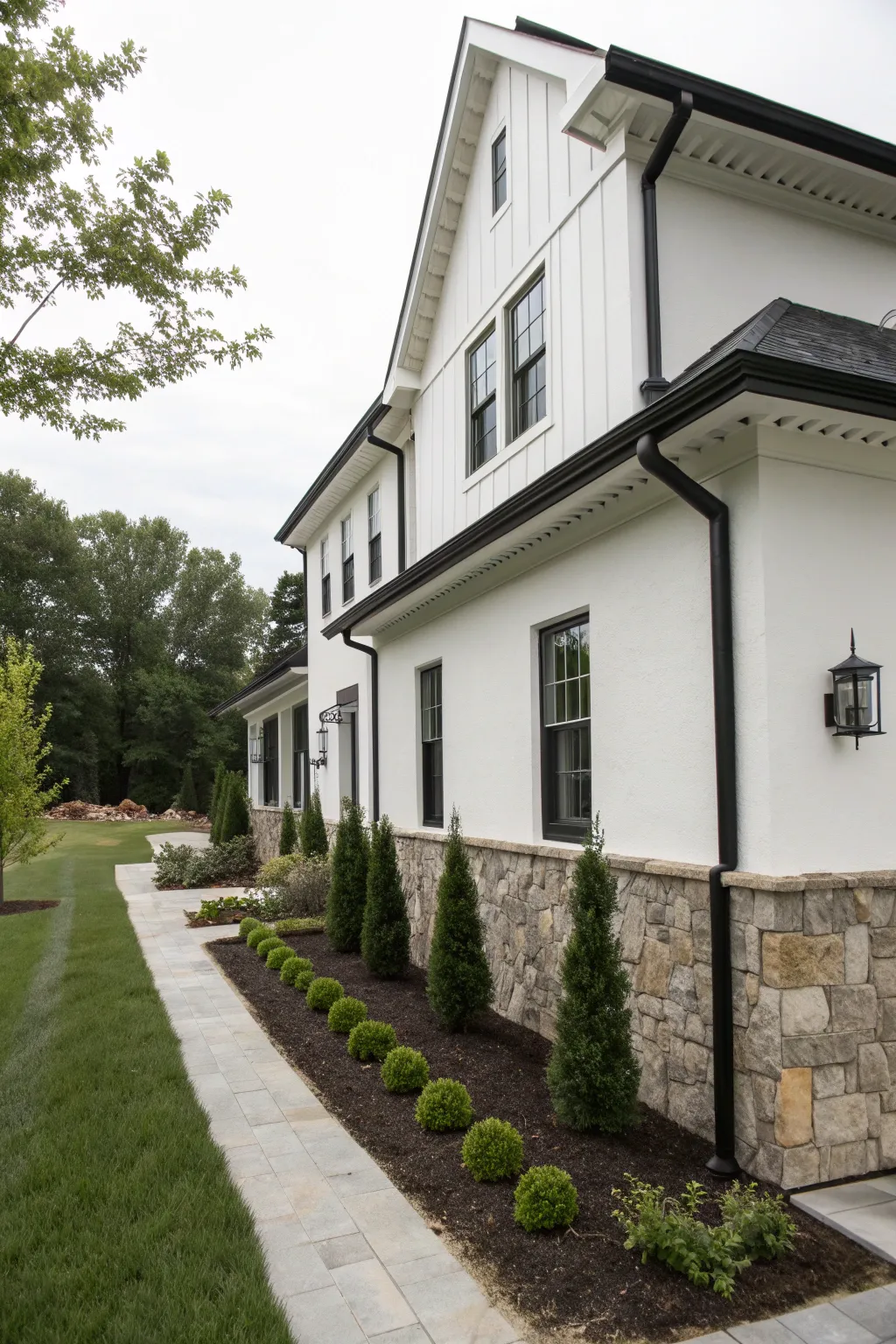 Incorporating materials like stone or wood accents can add texture and depth to your exterior. I love how these elements can soften the stark contrast while adding character.