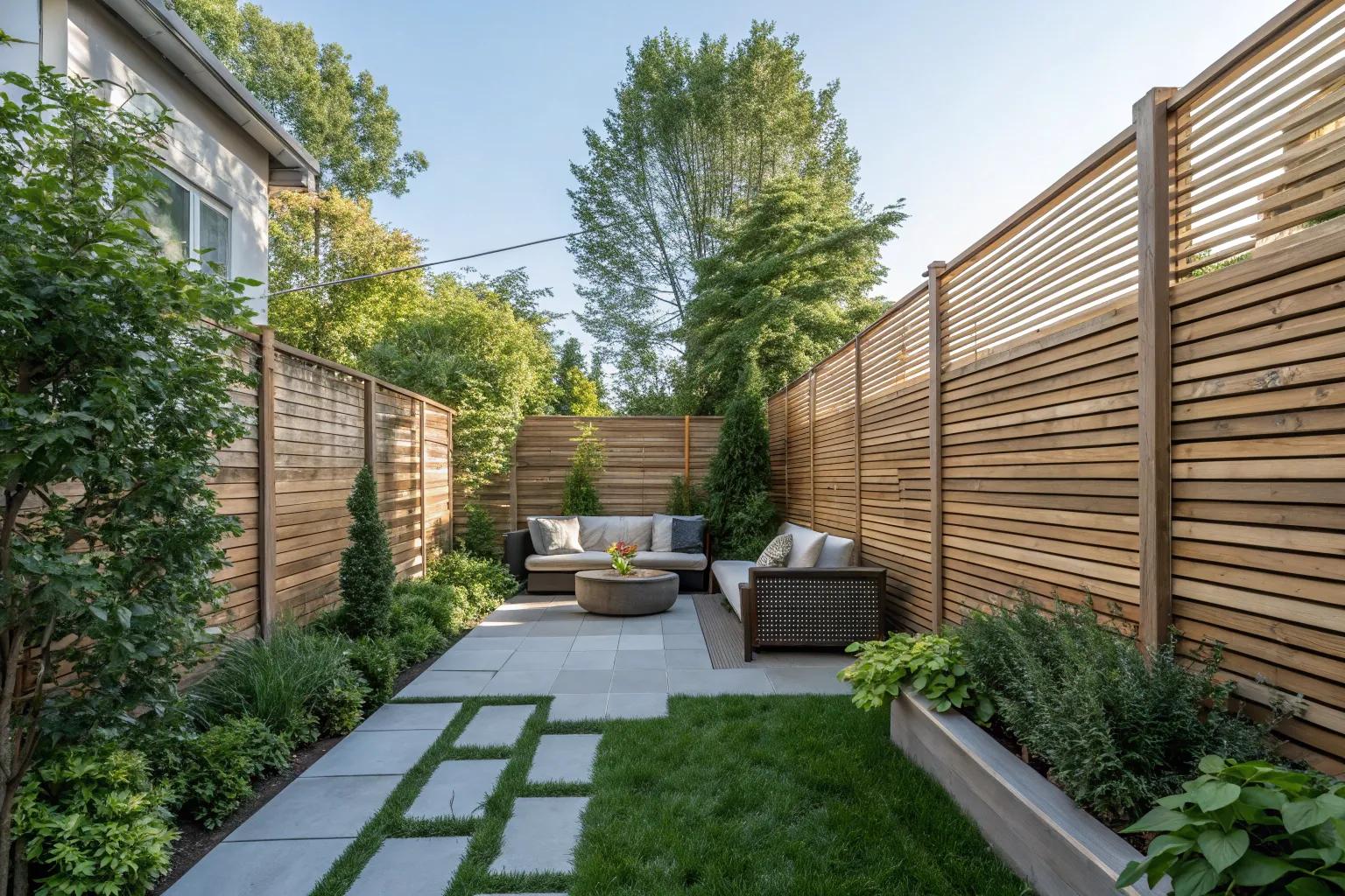 - Horizontal Slat Fence Panels: Upgrade your yard with modern horizontal slat panels for a contemporary appeal.