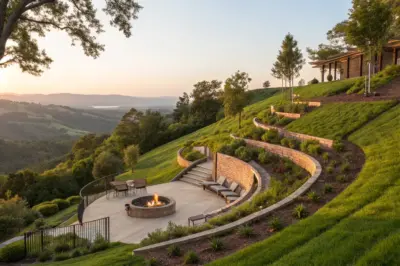 Imagine transforming a slope into a series of terraced seating levels that all lead to a fire pit at the center. This design not only makes use of the natural incline but also creates an intimate and inviting atmosphere for gatherings.