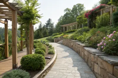 For steeper slopes, terracing your walkway can create a multi-level journey through your garden. I’ve seen how this approach not only manages the incline effectively but also adds a unique architectural element to outdoor spaces.