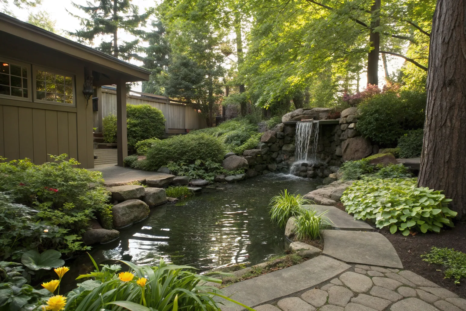 Install a mirror on a nearby wall to reflect the pond and waterfall, creating an illusion of space. This is a clever trick I often recommend for small yards.