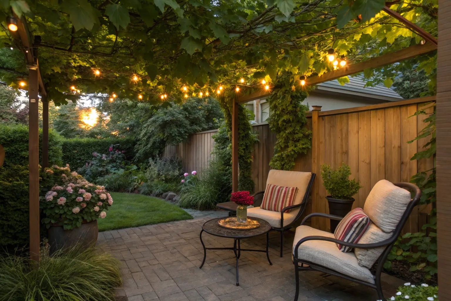 - Wooden Trellis: Add vertical greenery using a wooden trellis, perfect for creating a lush and cozy ambiance.