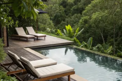 Surround your pool with exotic plants for a lush, tropical vibe that feels like a resort. I love using palms and ferns to create that getaway sensation right at home.
