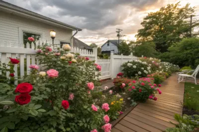 Choose a unified color scheme for your rose varieties to create a cohesive look. This simple technique can make your small garden appear more organized and spacious.