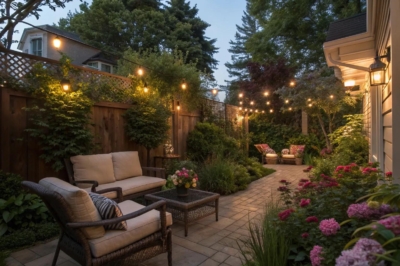 Add a touch of magic with string lights that create a warm ambiance. In my experience, they’re an easy way to give any side yard a cozy, inviting feel, especially in the evenings.