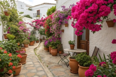 Nothing says ‘Spanish garden’ like bougainvillea spilling over walls and fences. Its vibrant colors can transform any dull corner into a picturesque focal point.