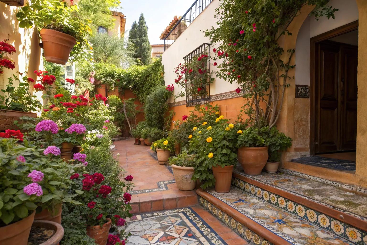 Incorporate colorful tiles into your garden design to capture the essence of Spanish flair. Whether on pathways, walls, or steps, their intricate designs add a burst of tradition and beauty.