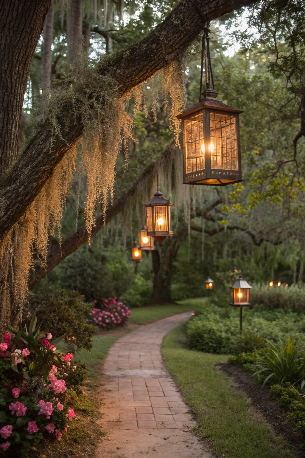 Wrap Spanish moss around outdoor lanterns for a rustic glow. It’s a charming way I’ve found to light up pathways and patios with a touch of nature.