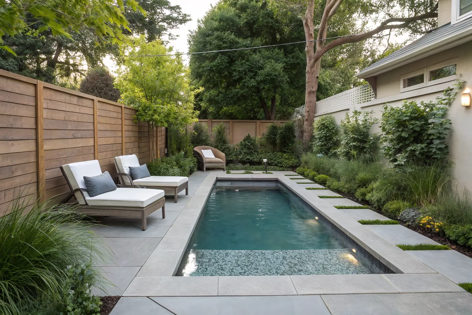 - Sleek Outdoor Lighting: Illuminate your space with sleek, minimalist lighting to complement your modern pool aesthetic.