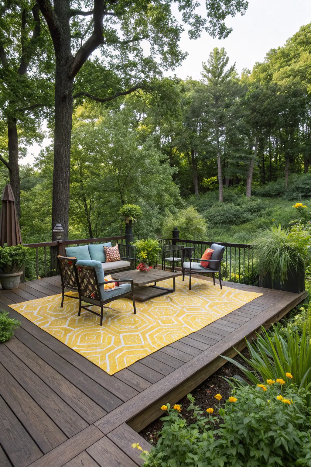 A decorative outdoor rug can make your deck pop, adding warmth and color. I’ve seen clients fall in love with how a simple rug transforms their space.