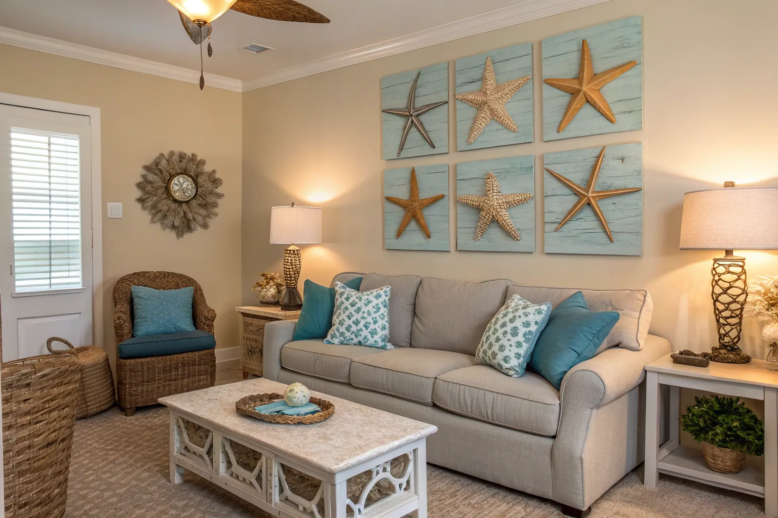Hang a starfish from the corner of a mirror for a charming coastal detail that catches the eye. It’s a quick way to add personality to any room.