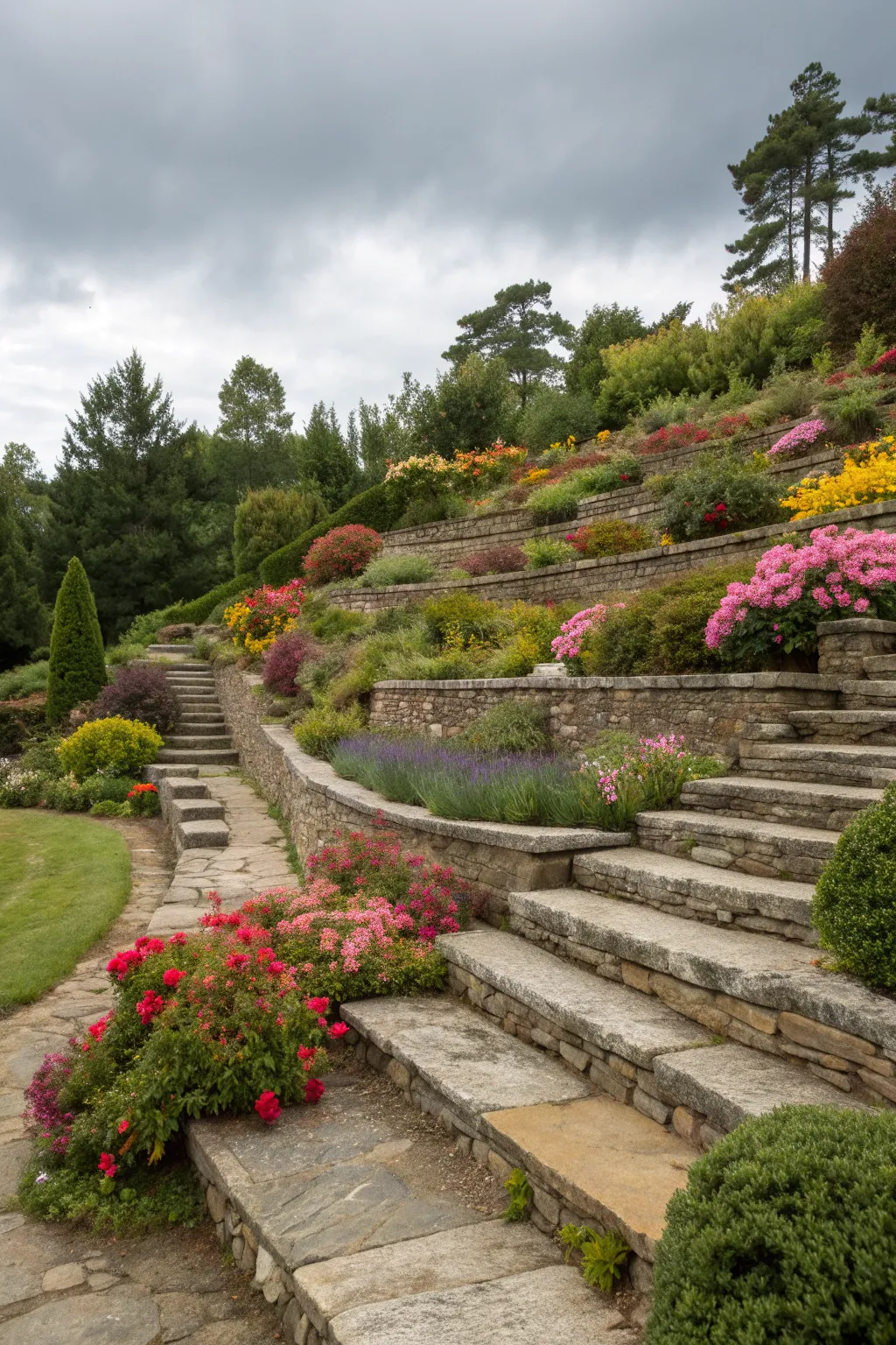 Create multi-level landscapes with stone terraces that add depth and dimension to your garden. This approach allows me to plant a variety of flora in different tiers, enhancing the visual appeal.