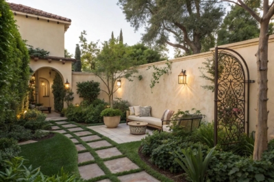Imagine a curved stucco wall that gracefully guides you through your garden. I’ve seen it create a soft, inviting flow that feels like a gentle hug for your space.