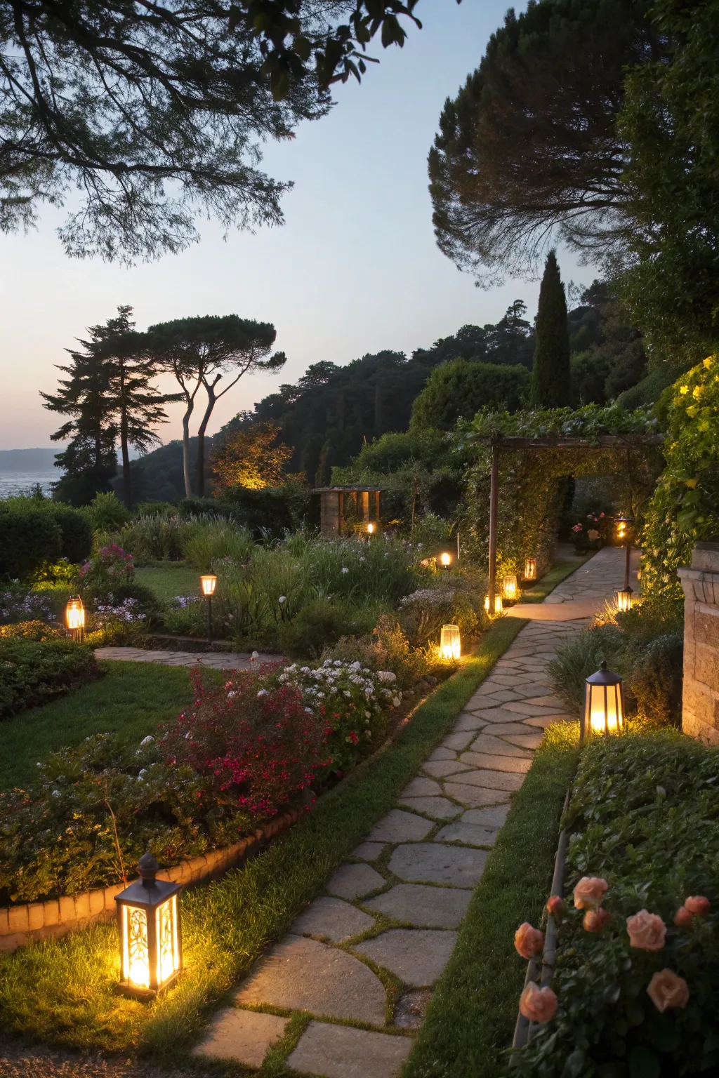 Lighting can transform your garden into a magical space at night. I often suggest using lanterns or embedded lights to create a warm, inviting glow.