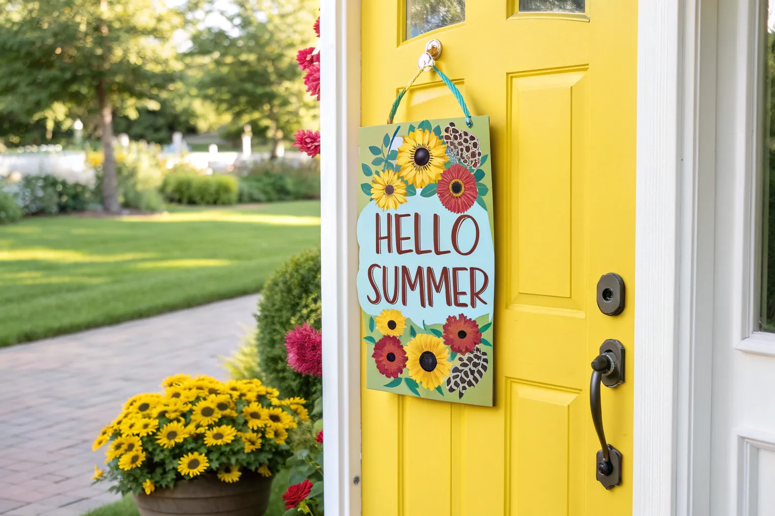 Sunflowers are a staple of summer, and a sunflower-themed hanger brings warmth and cheer. I’ve seen how these bright yellows can instantly uplift a home’s entrance.