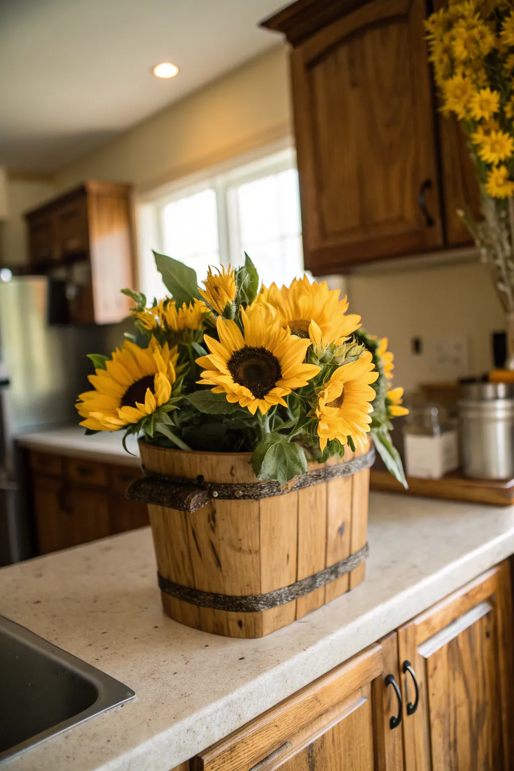 - Decorative Wooden Buckets: Enhance your sunflower arrangements with charming wooden buckets for an authentic rustic appeal.