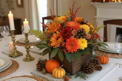 Combine the elegance of roses with the soft glow of candles for a classic look. This arrangement is perfect for a romantic Thanksgiving setting.