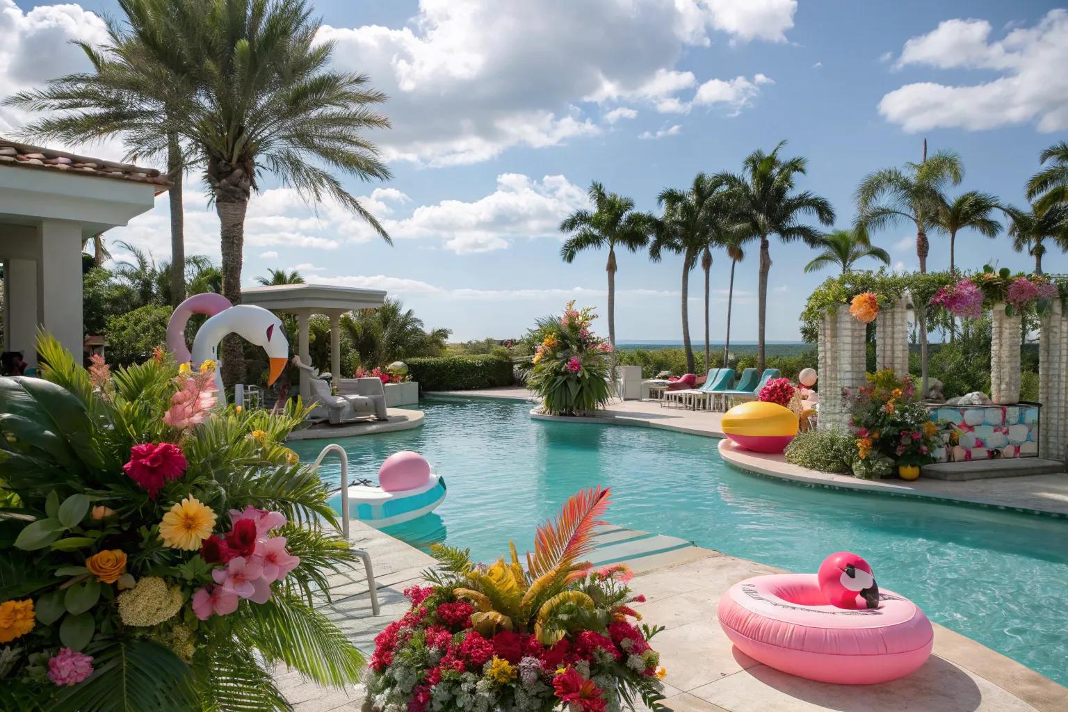 Throw it back to the 80s with neon colors, classic rock tunes, and vintage swimsuits. I once added a jukebox and it really got everyone into the groove!
