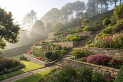Add elegant pathways and steps within your retaining wall to enhance accessibility and charm. I’ve found that clients appreciate how these paths blend functionality with aesthetics, making their gardens more inviting.