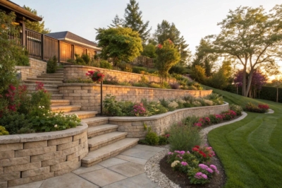 Transform your retaining wall into a canvas for your gardening dreams with each tier hosting a different plant variety. I’ve seen clients’ faces light up when they see their tiered gardens burst into life with colorful flowers and aromatic herbs.