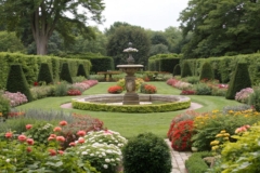 Surrounding water features with topiary can create a serene and elegant environment. I love how the reflection of sculpted greenery in water adds a touch of magic to the garden.