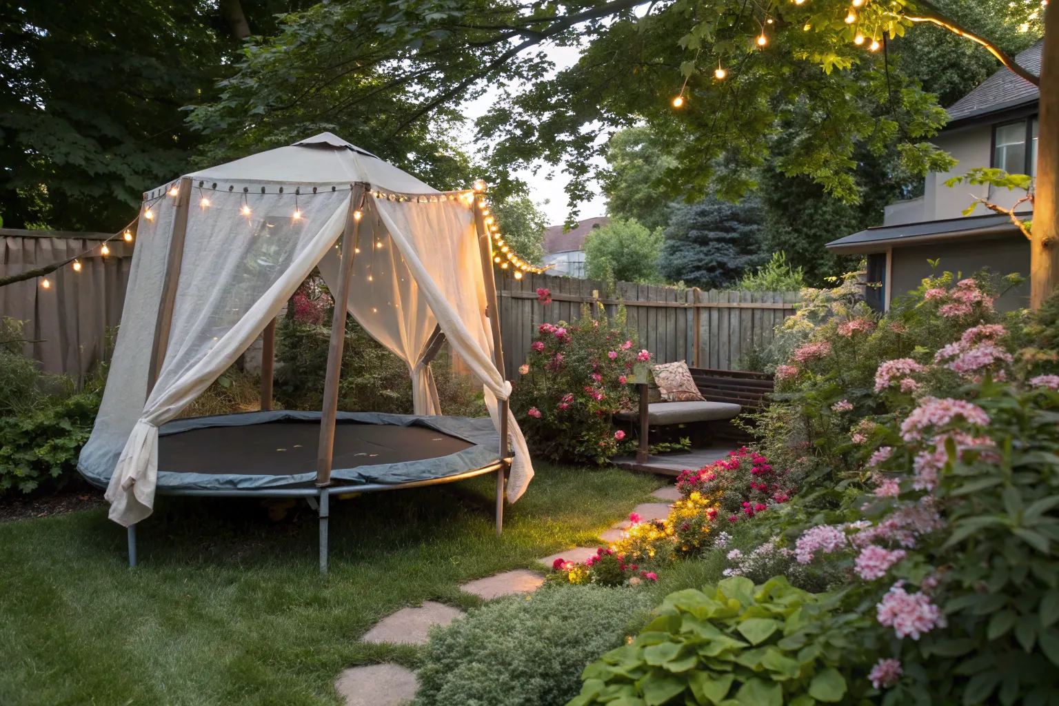 - Outdoor String Lights: Illuminate your trampoline teepee with enchanting string lights for a magical evening atmosphere.