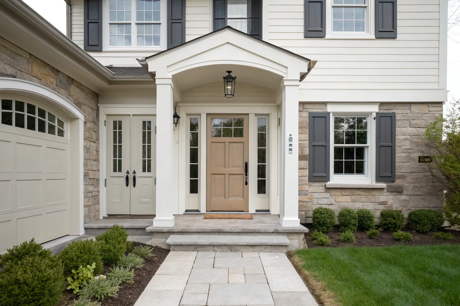 Columns or overhangs can add a grand architectural touch to your front door. I’ve seen these elements transform an entryway, giving it a structured and inviting look.