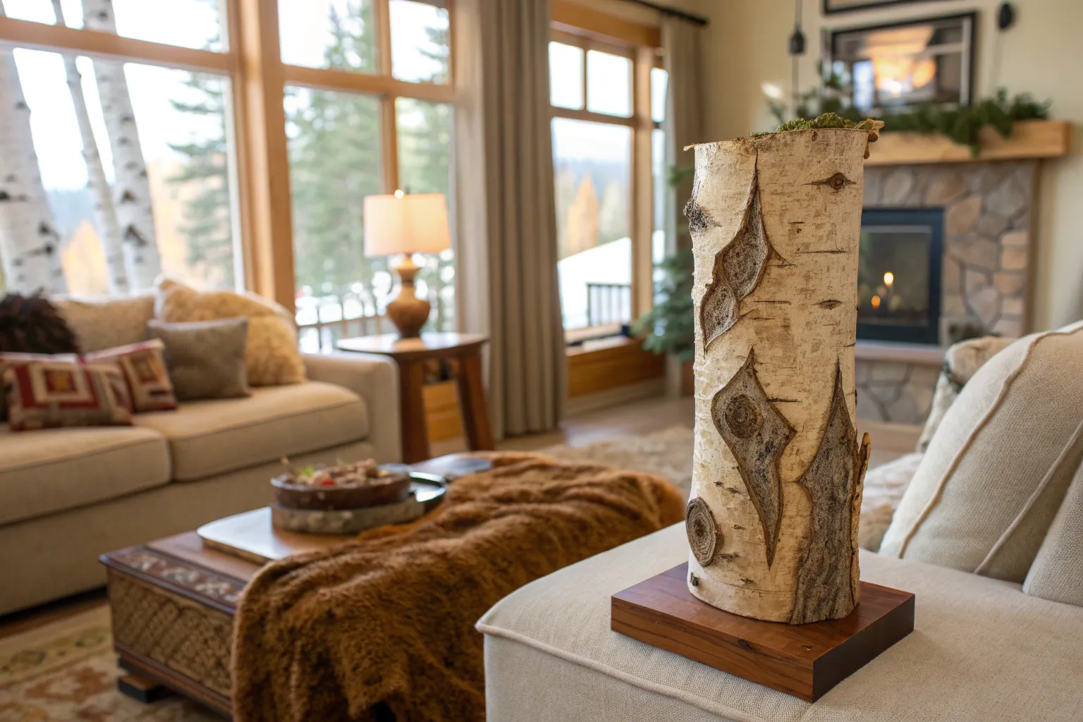 Install bark-covered wall hooks for a functional and decorative element. They’re perfect for hanging coats or bags.