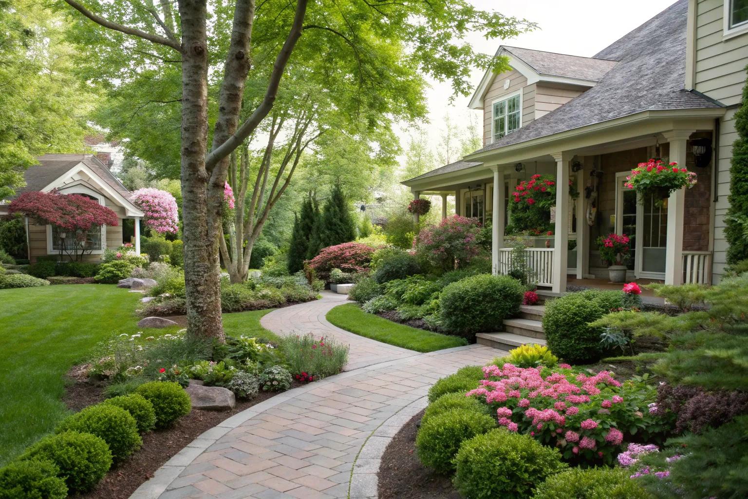 Use evergreens or dense trees to create privacy screens in your front yard. I’ve helped many clients achieve a sense of seclusion with strategic tree placement.