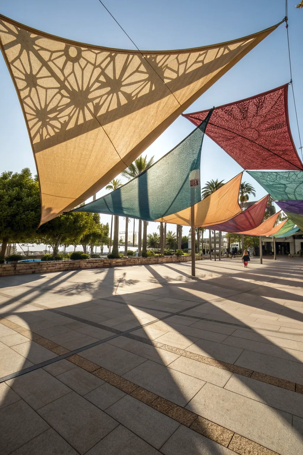 - Patterned Outdoor Shade Fabric: Transform your space with patterned fabrics, creating intricate shadow displays that change hourly.