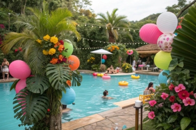 - Tropical Themed Balloon Set: Enhance your tropical pool party with themed balloons that add an extra splash of fun.