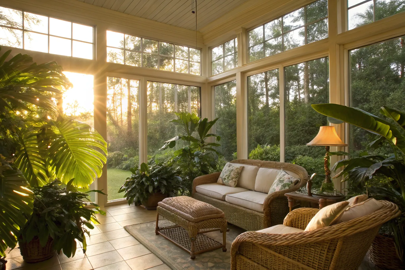 Opt for wicker furniture to add a touch of casual elegance to your sunroom. In my projects, wicker pieces always bring that relaxed, vacation-like vibe everyone loves.
